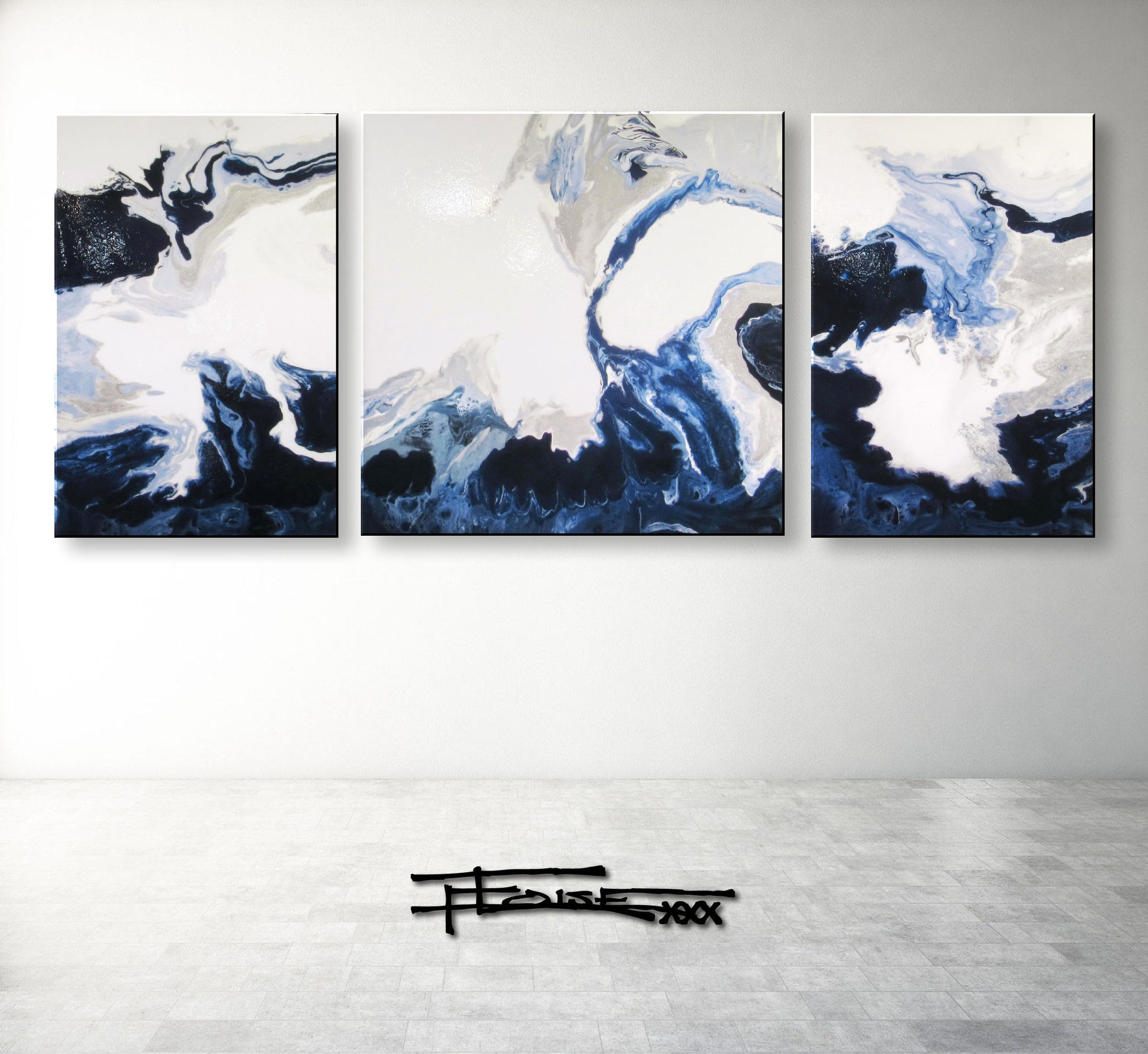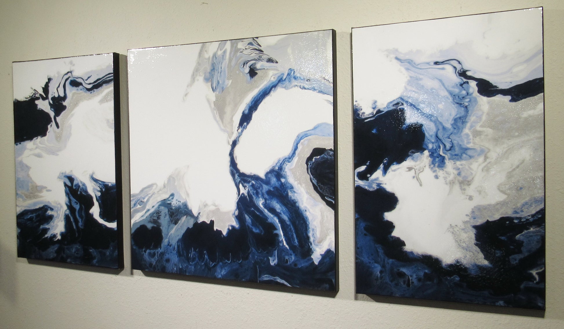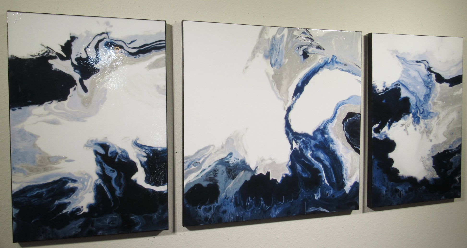 3 BIG BLUE - 84 x 36 x 1.5 - TRIPTYCH The center piece is 36 x 36 and the two side pieces are 36 x 24.