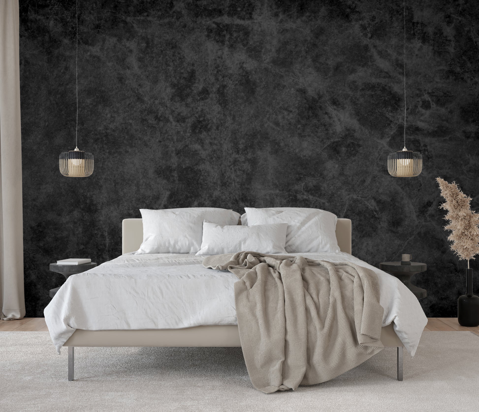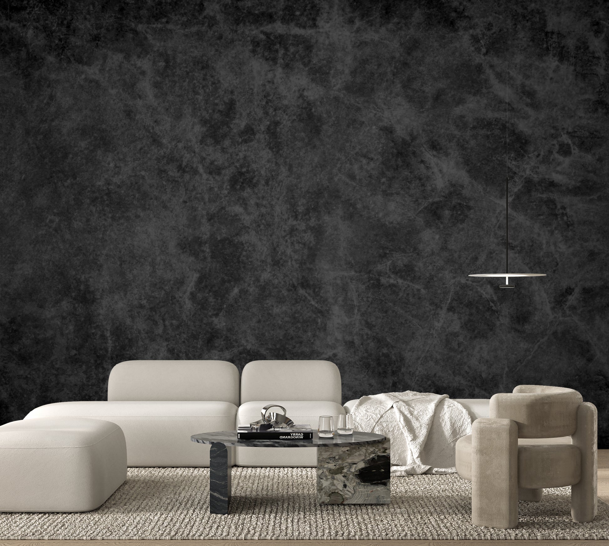 Elevate your space with this stunning Black Leathery look Abstract Wallpaper Mural, featuring charcoals and black, The distressed urban textured design blends contemporary art with rich black tones to create a high-end, gallery-inspired backdrop for your living room, bedroom, or office. Luxury wallpaper.