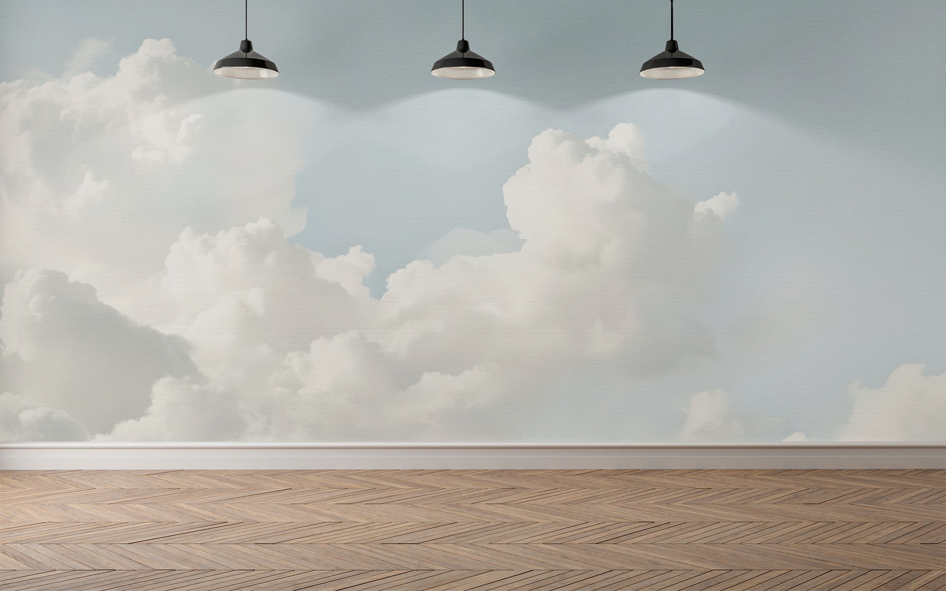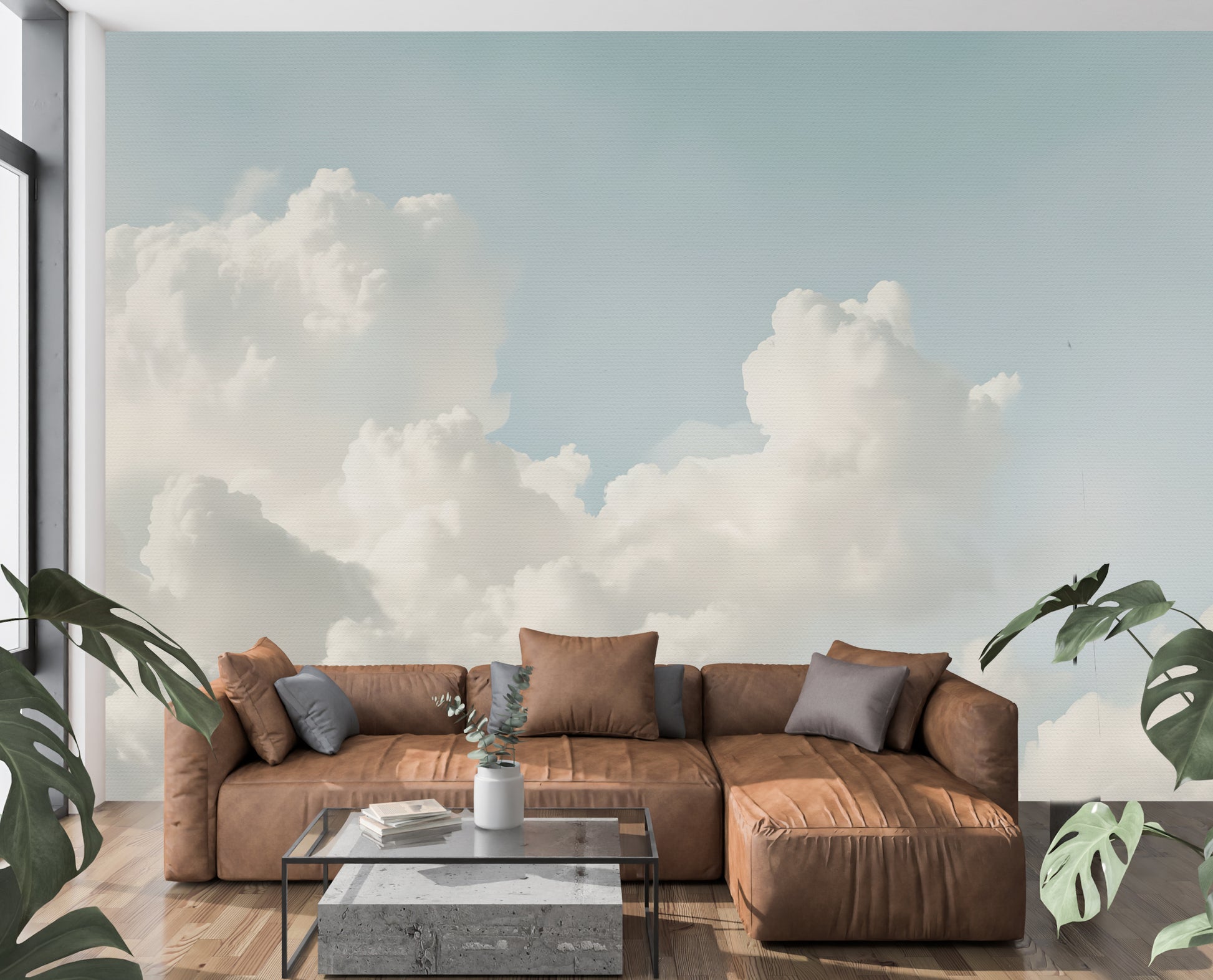 Watercolor Clouds Wall Mural Modern Wallpaper in Peel & Stick Canvas Vinyl or Non-Woven
