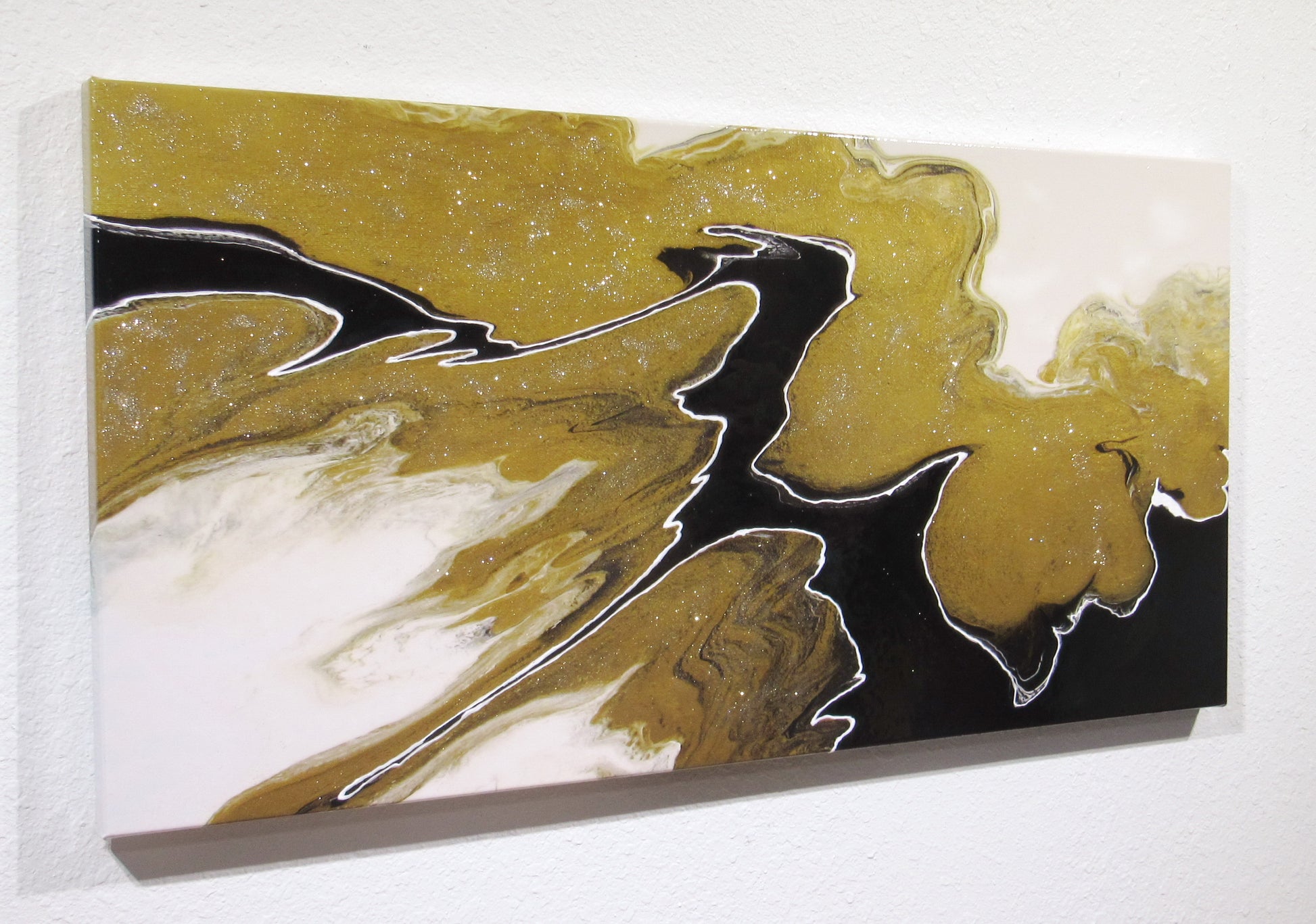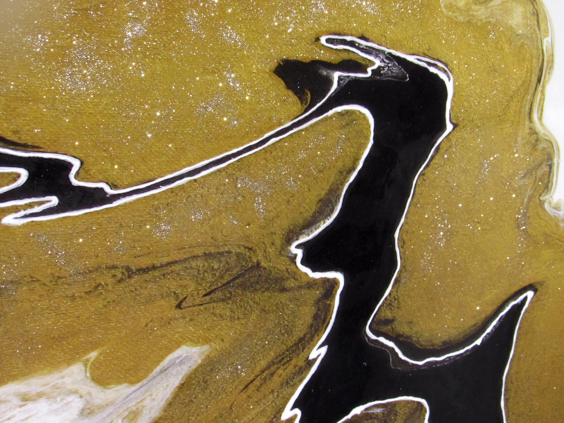 Gorgeous shades of black, creamy white and metallic gold infused with micro gold metal flakes. Sparkles as you walk past. Stunning....
