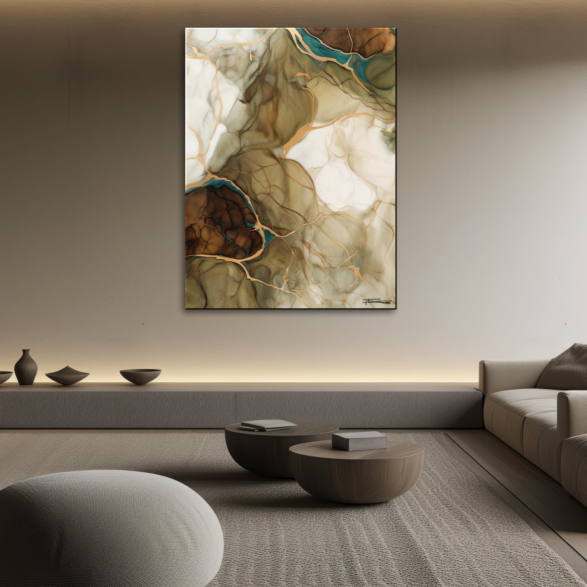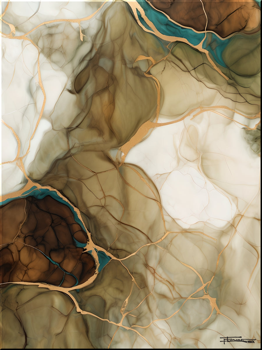Golden Strata I is a hand embellished limited edition giclée print created from my original abstract painting. Inspired by natural layers found in stone, earth, and shifting landscapes, this piece features soft neutrals, warm browns, creamy whites, and subtle teal accents, all connected by flowing metallic gold lines. The composition feels both organic and refined, bringing depth, movement, and quiet elegance to any space.