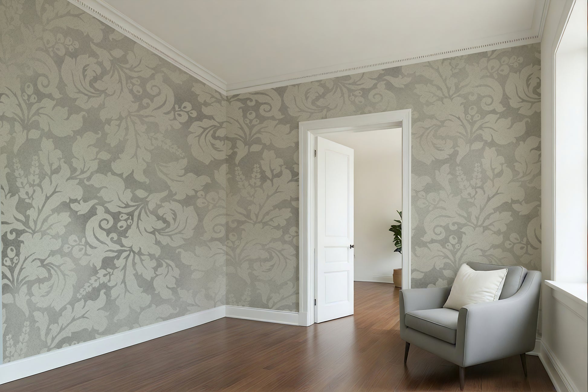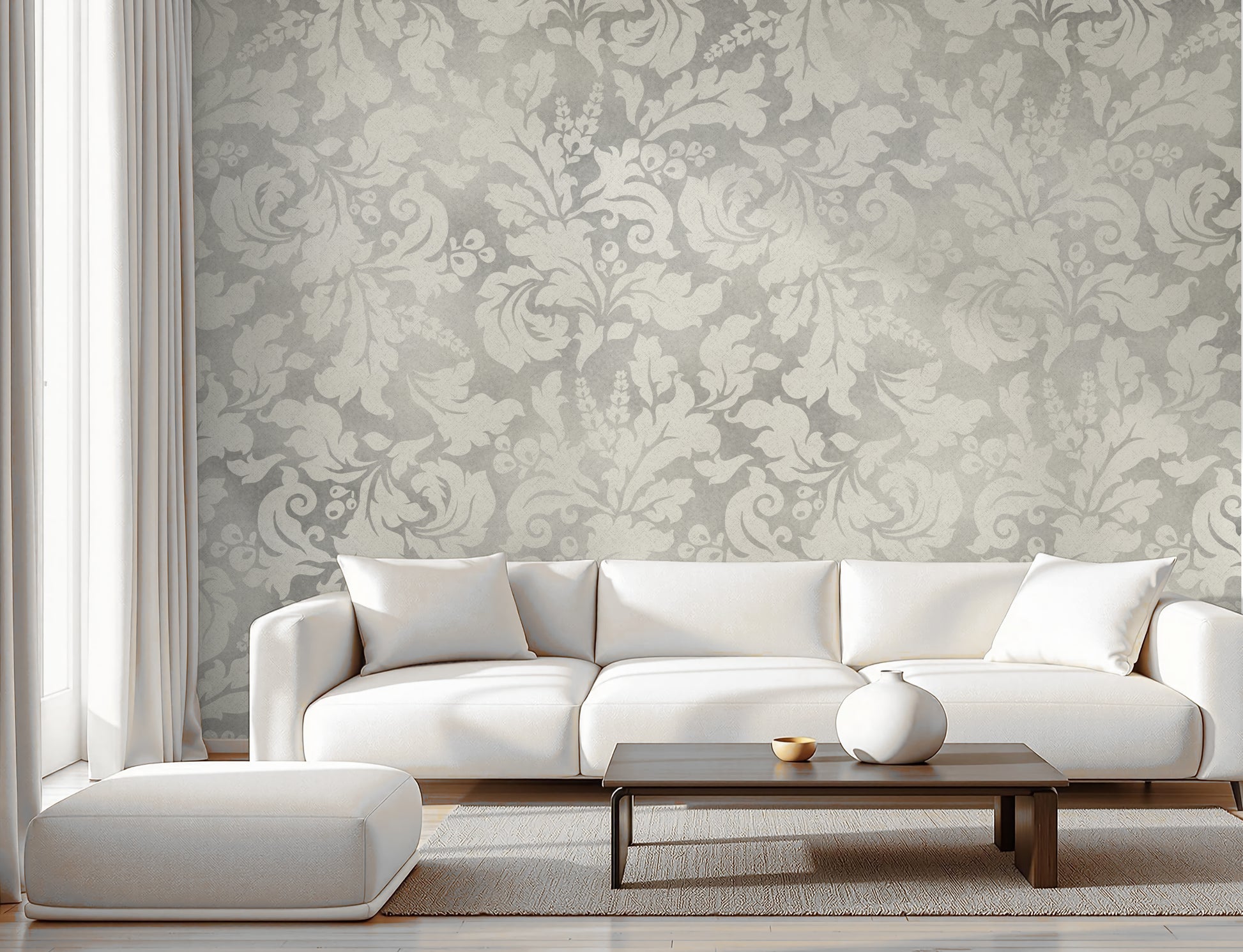 Gray Damask Wall Wallpaper Mural in Peel & Stick Canvas Vinyl or Non-Woven