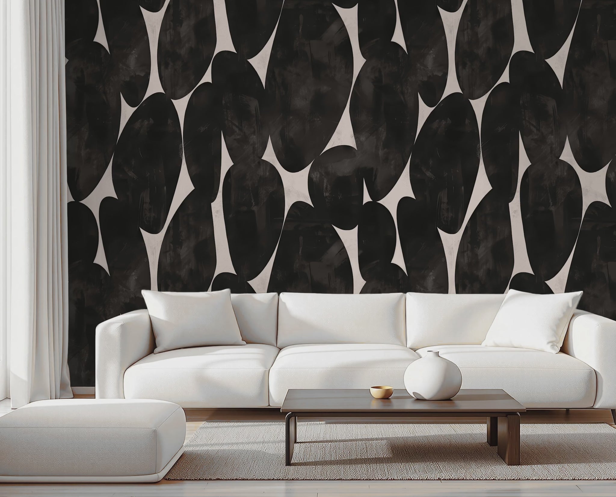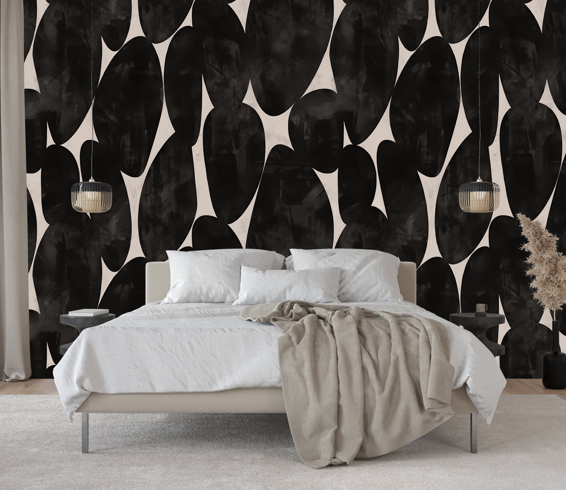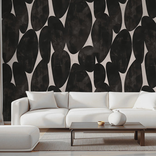 Elevate your space with this stunning Extra Bold Print with texture Wallpaper, featuring soft charcoal greys, black and soft greiges. CHARCOAL STONES is a bold design that evokes a richness that envelopes your space. The extra bold print and neutral tones combine to create a gallery-inspired backdrop for your living room, bedroom, or office. Luxury wallpaper.