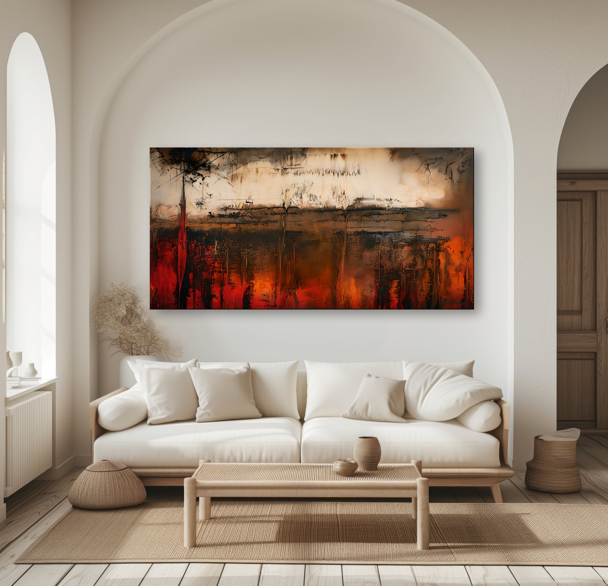 Unleash the energy of abstract expressionism with "Red Dynasty," a captivating limited edition giclée print that blurs the boundary between fire and earth.