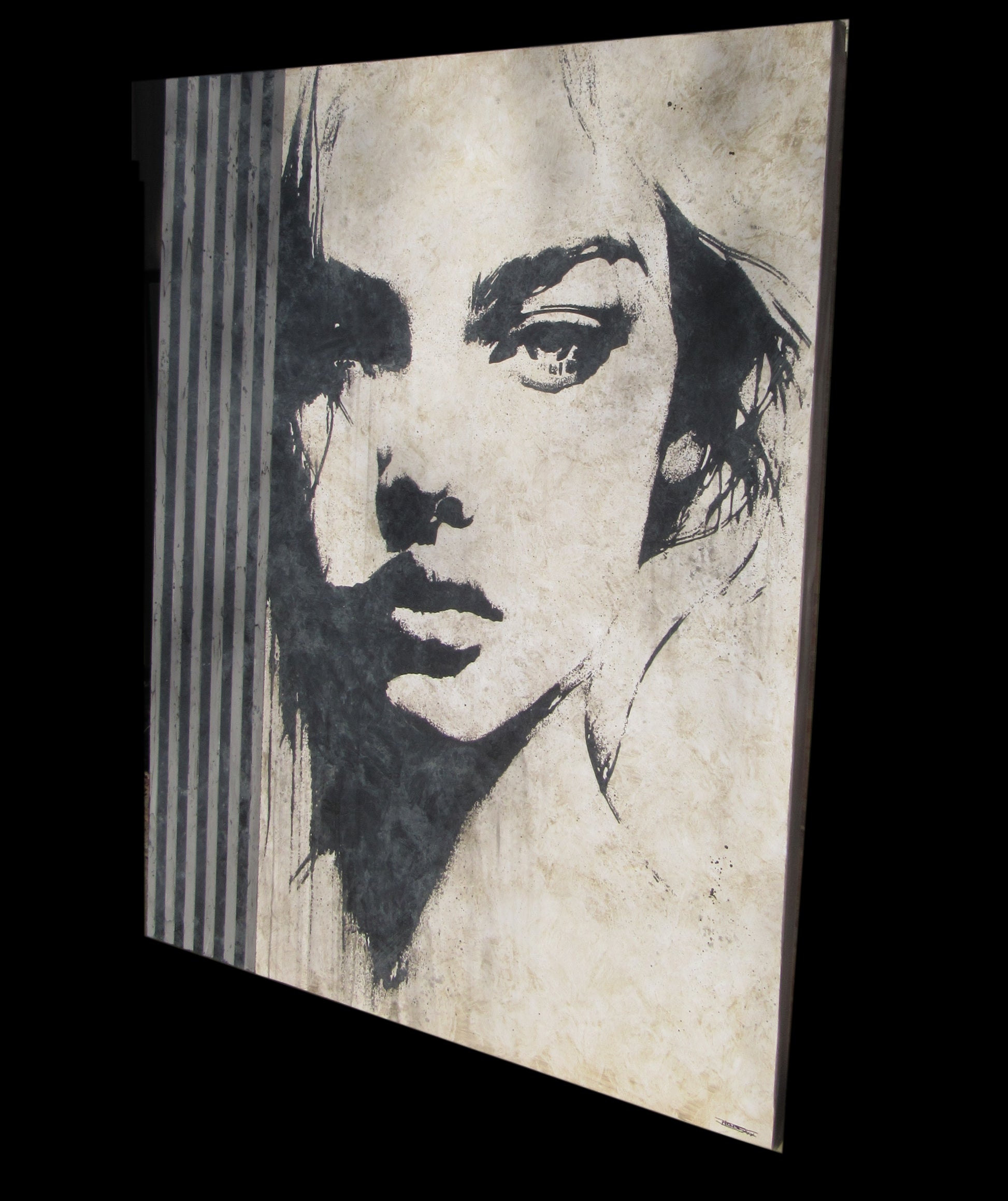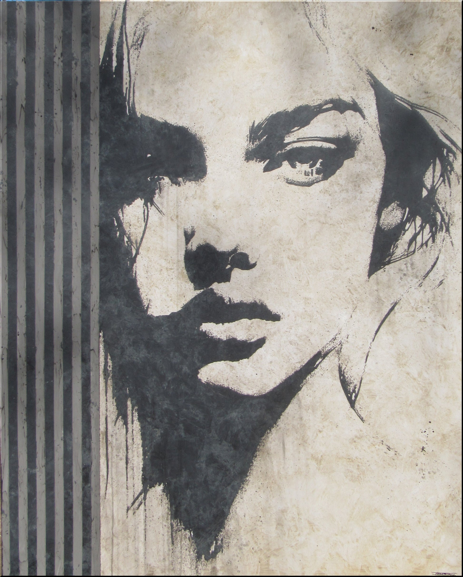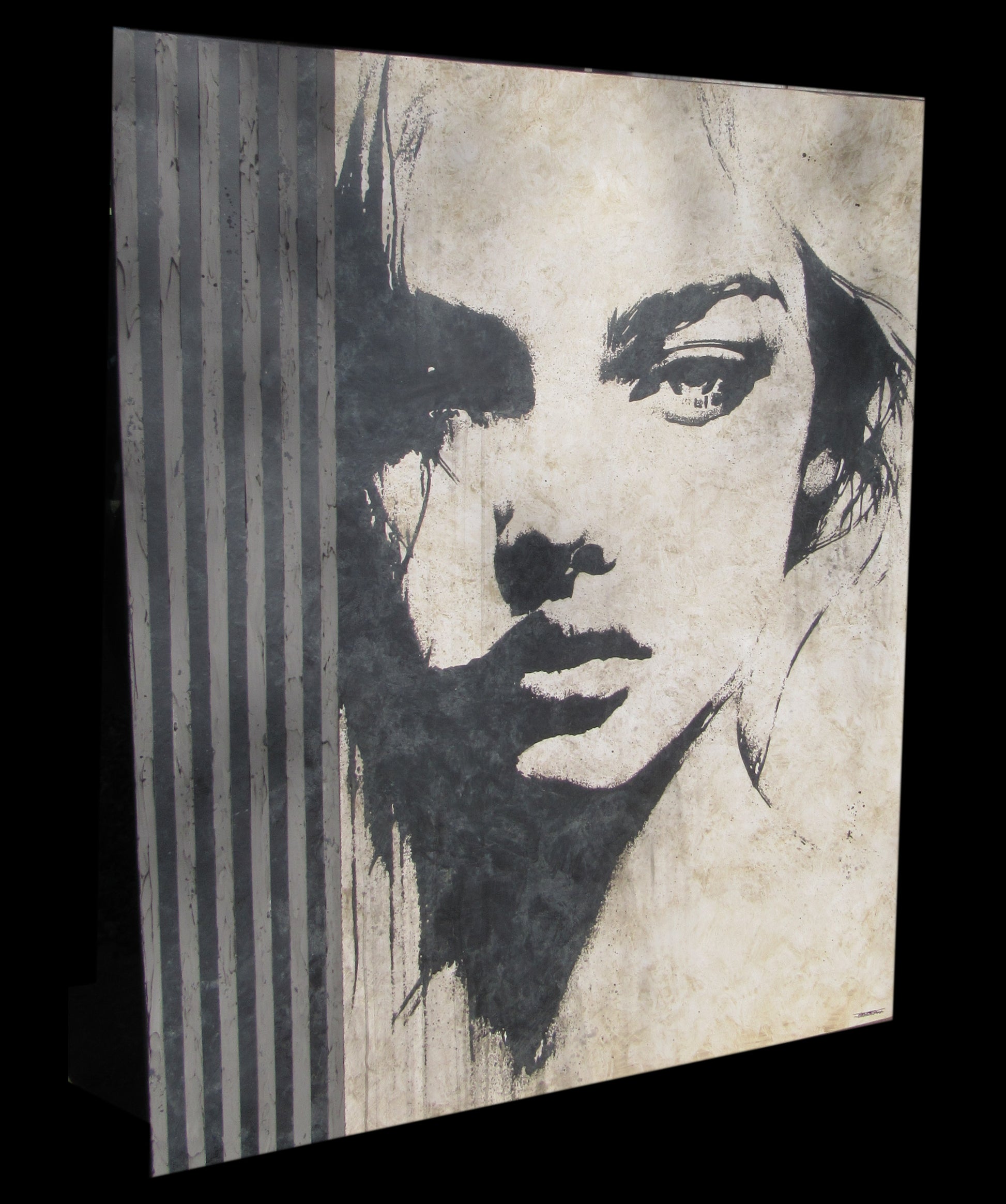 MIXED MEDIA TEXTURED LIMITED EDITION ON STRETCHED CANVAS. The striped areas are created using a heavy texture and are raised off of the surface.