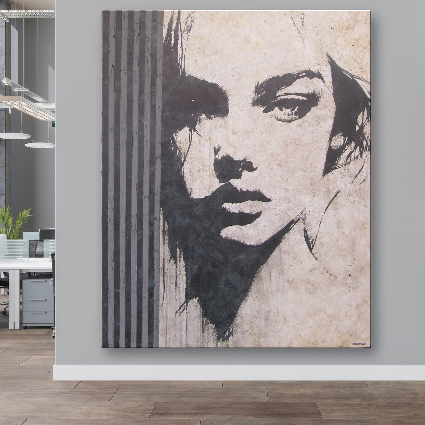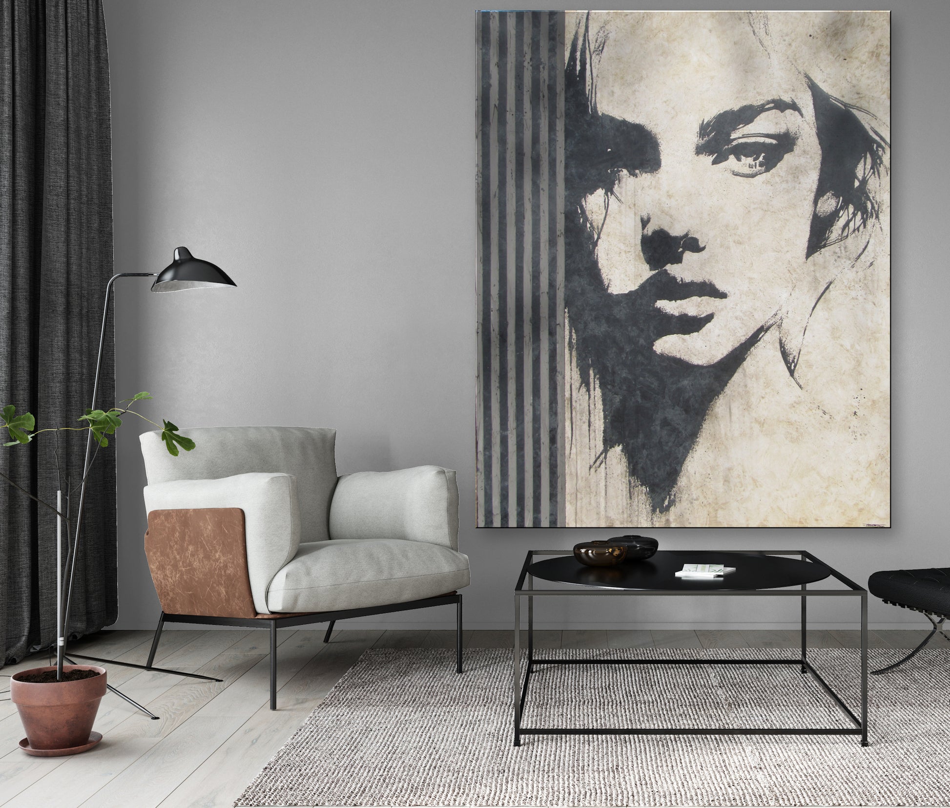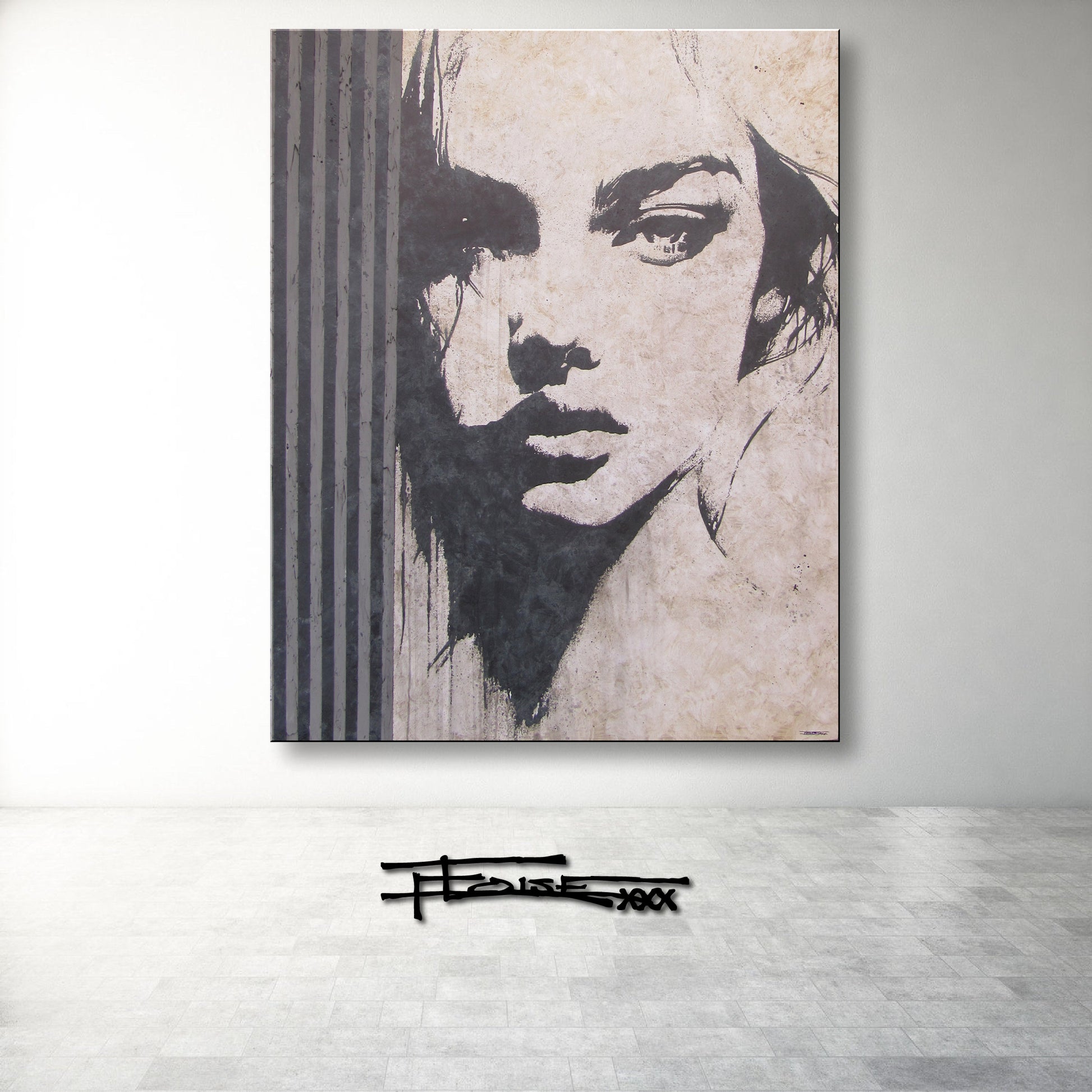 MIXED MEDIA TEXTURED LIMITED EDITION ON STRETCHED CANVAS. The striped areas are created using a heavy texture and are raised off of the surface.