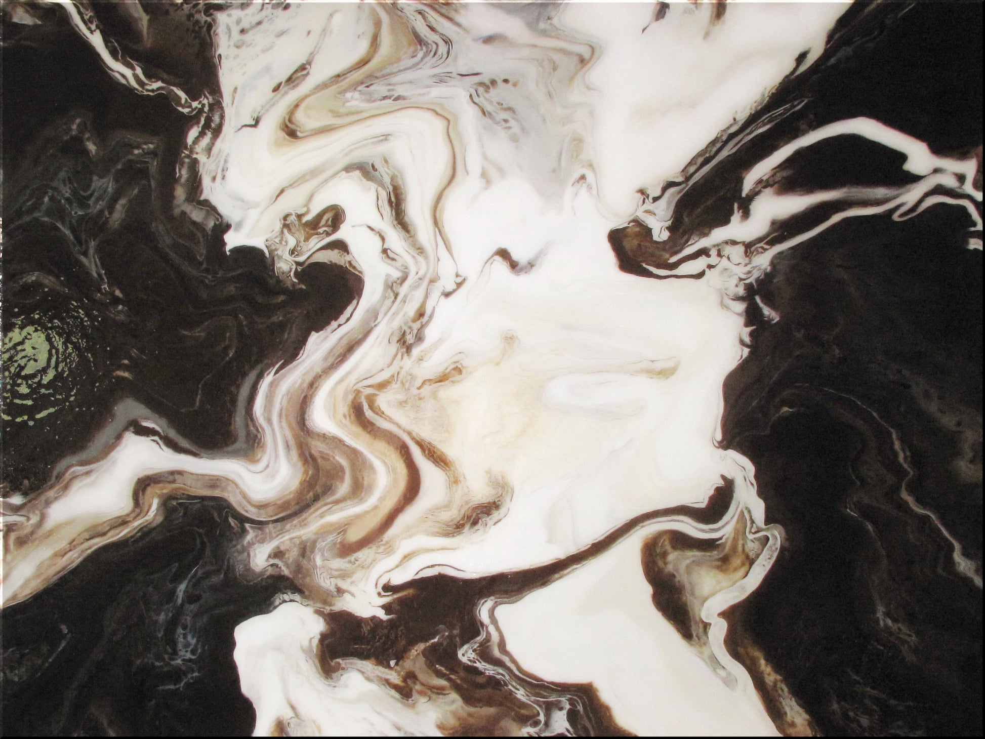 Gorgeous shades of rich espresso browns, lighter browns, tans, and creamy whites. With a lightly textural hand applied thick resin finish. (glasslike) STUNNING!