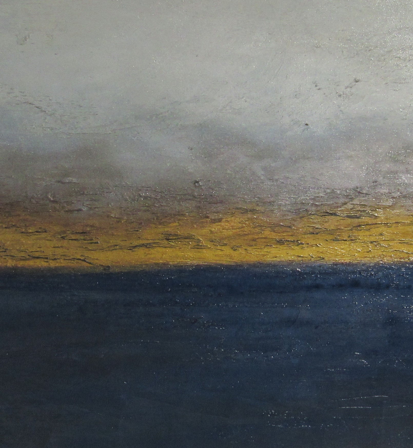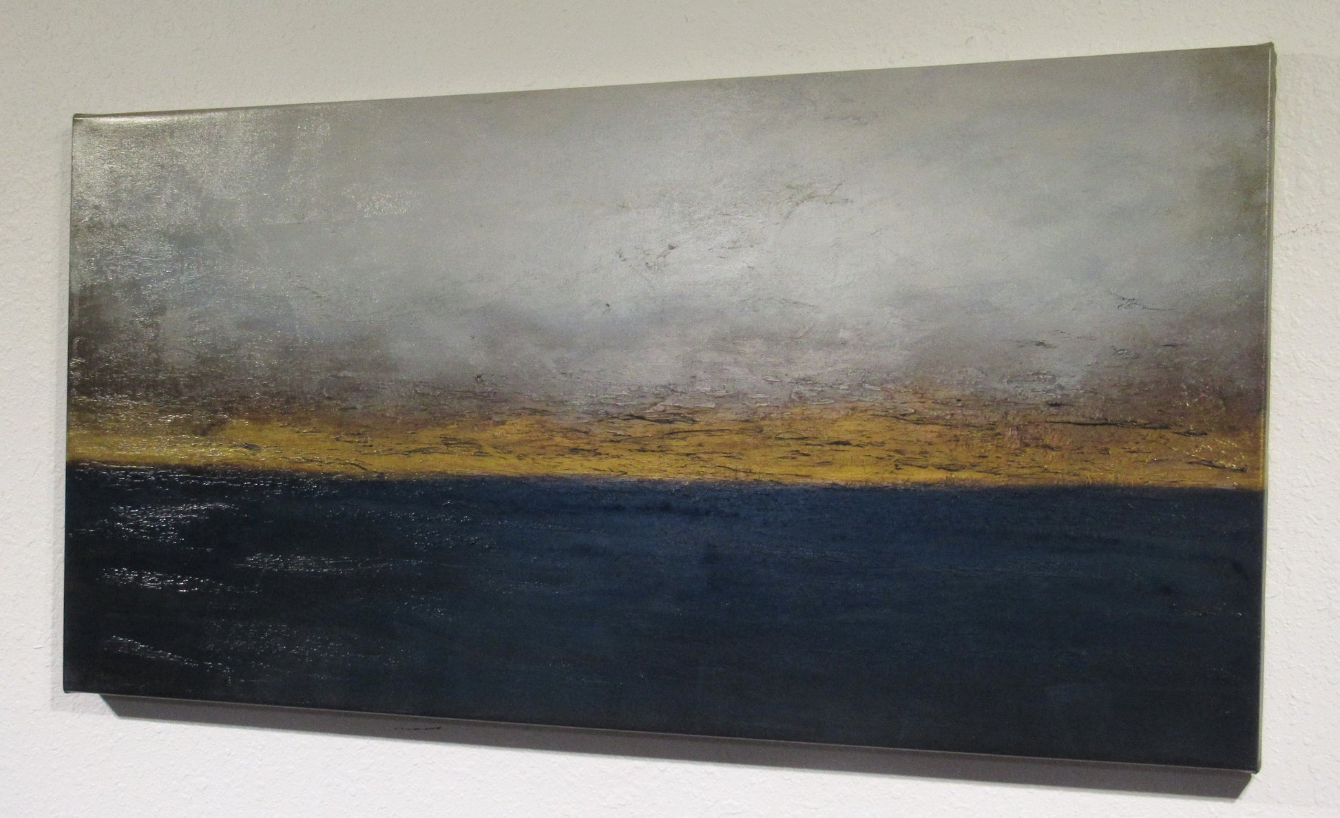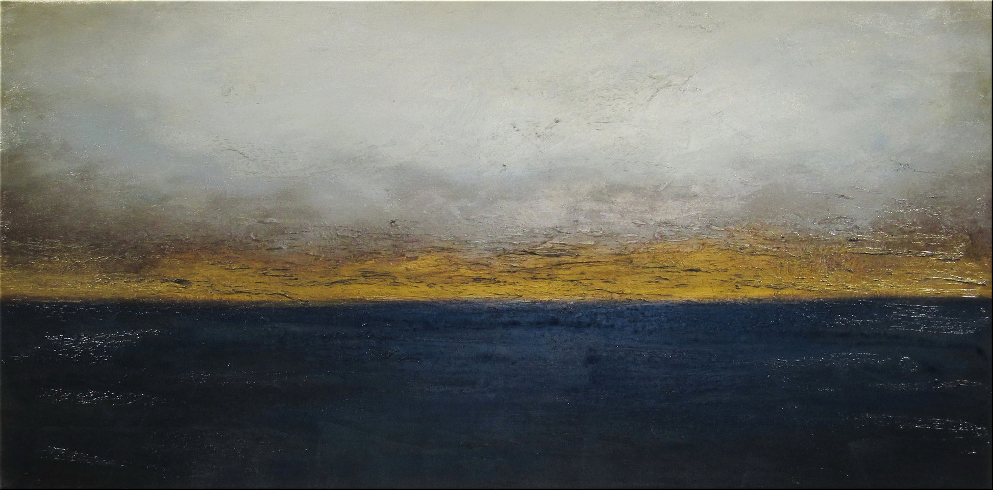 Colors are NAVY BLUES, BLUES, TAUPES, GRAYS AND METALLIC GOLD with touches of black.