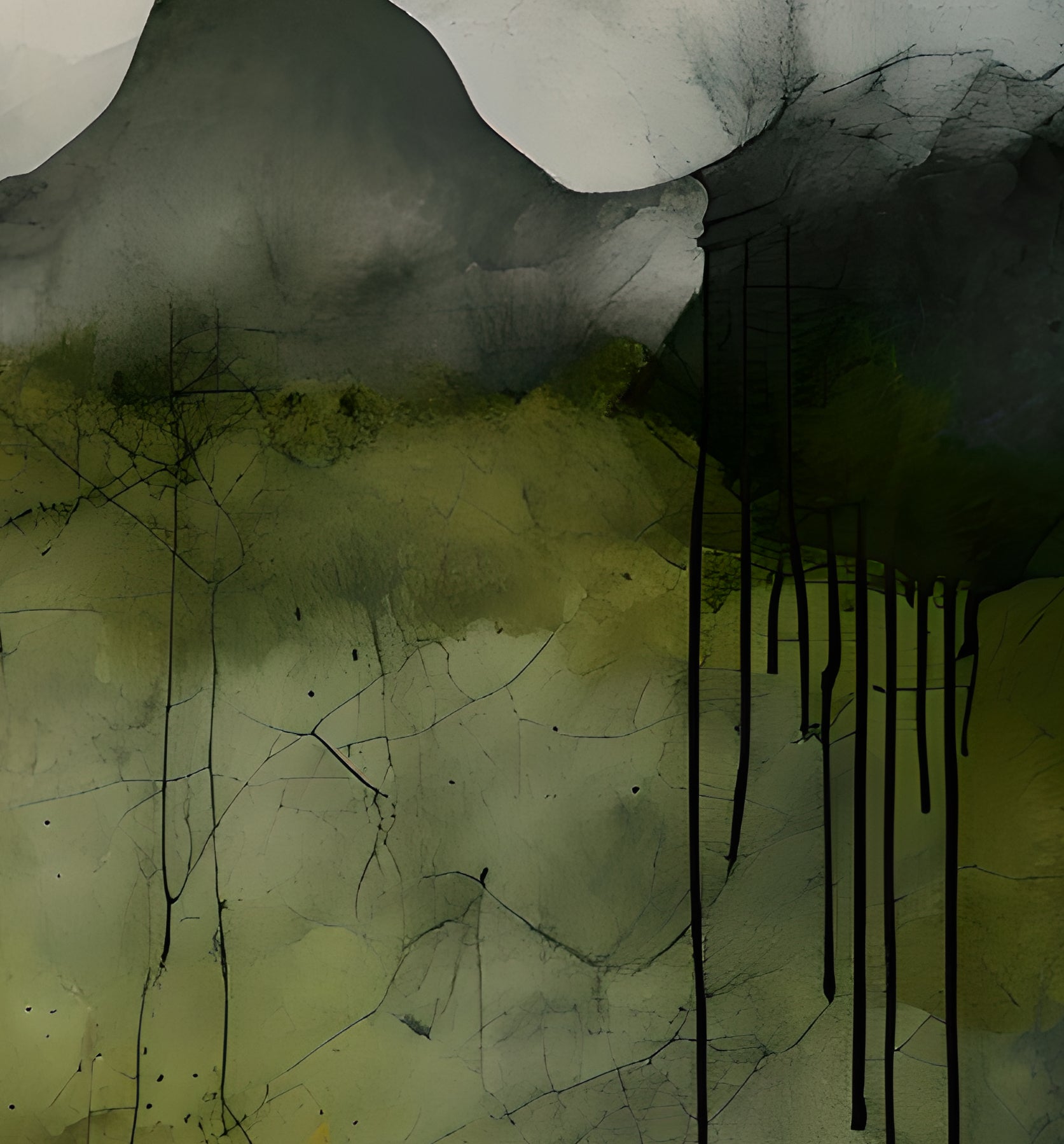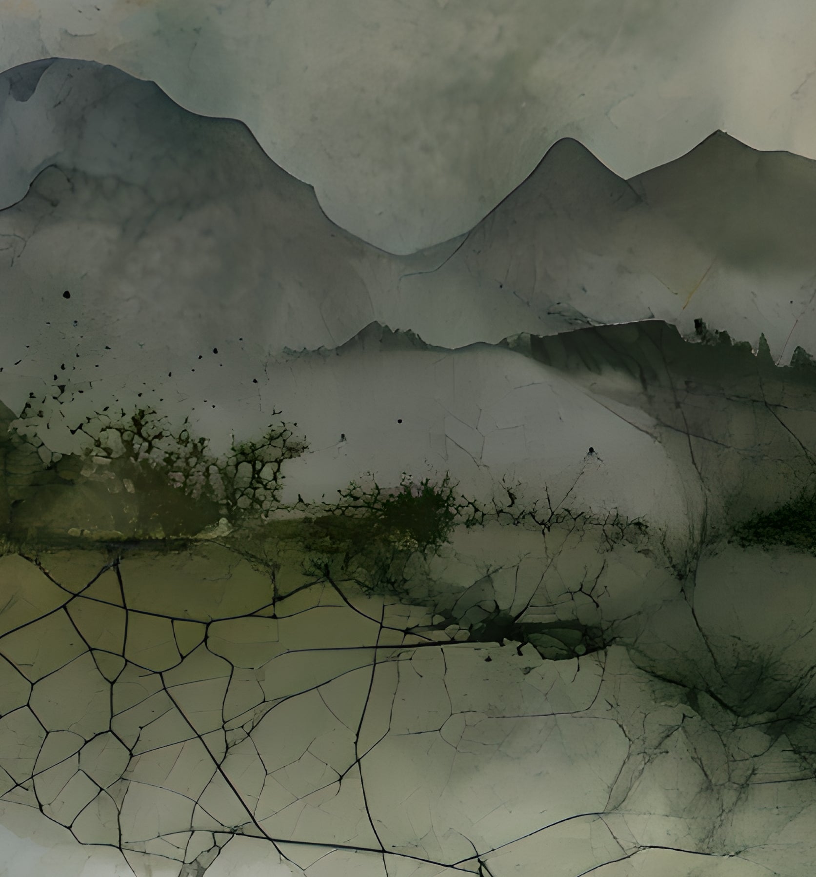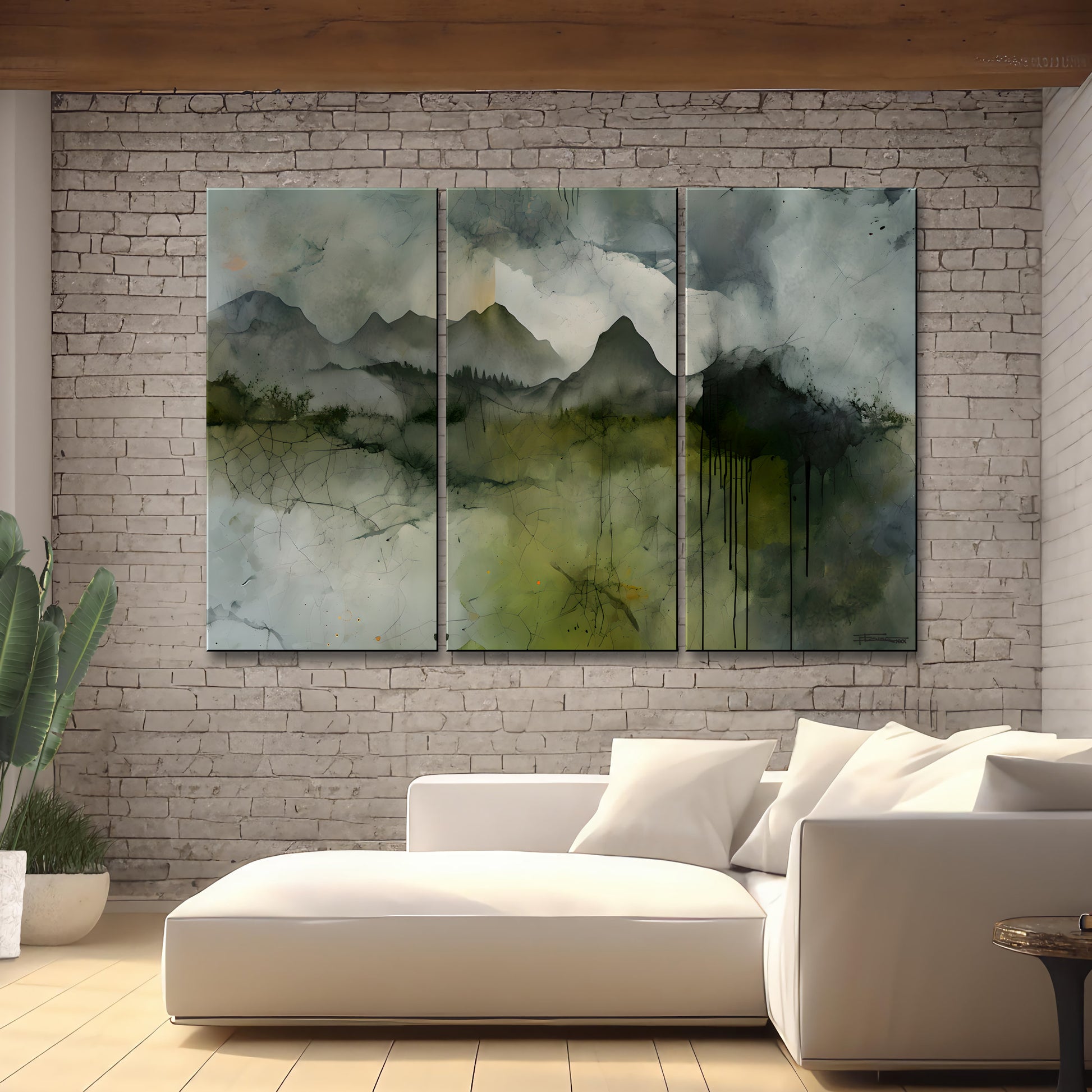 Bring sophistication to your space with this extra-large, hand-textured canvas painting featuring greens, grays, whites, and black tones. Distant abstract mountain range outlines evoke a sense of calm in this abstract landscapethat blends effortlessly into modern, minimalist, or rustic interiors.