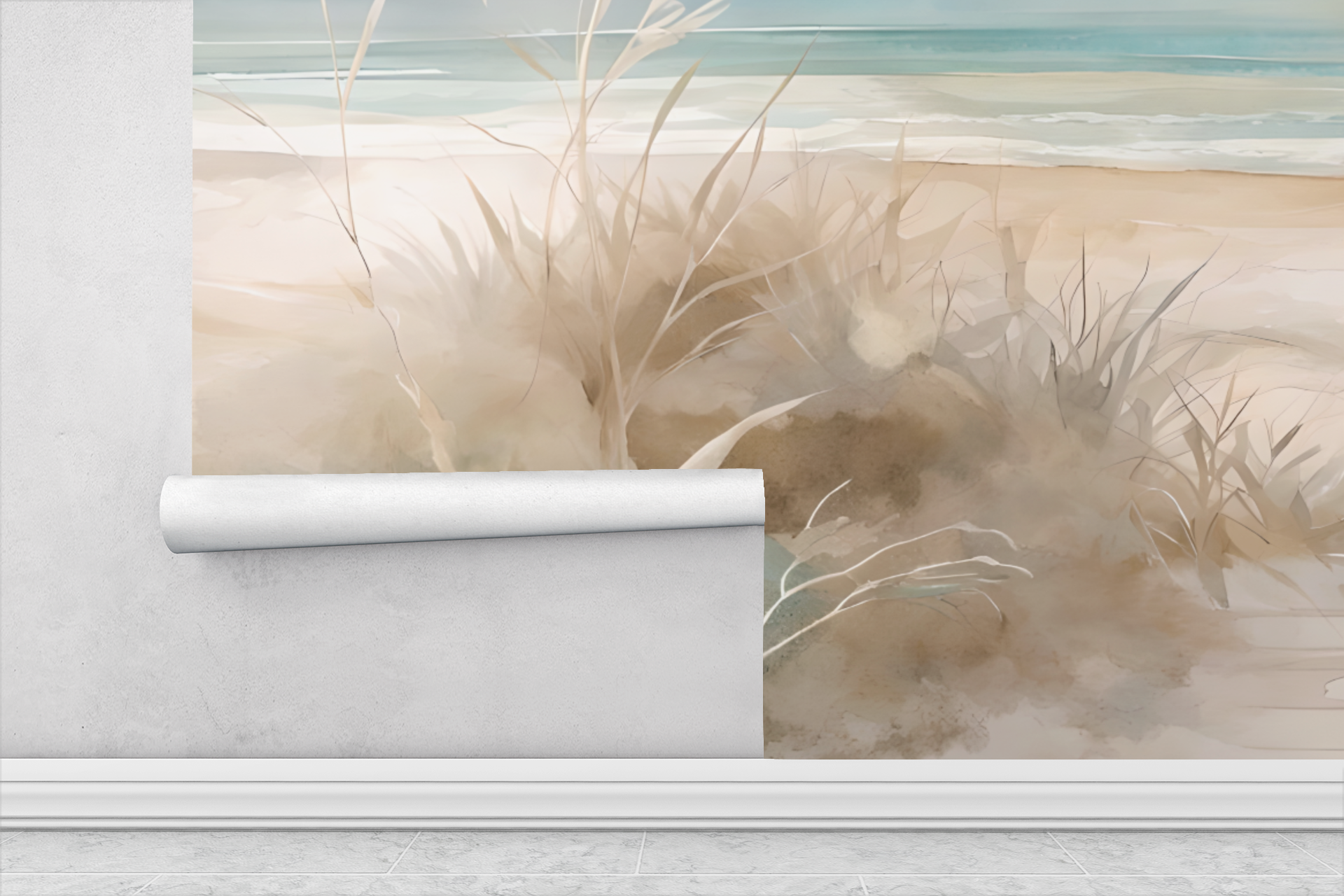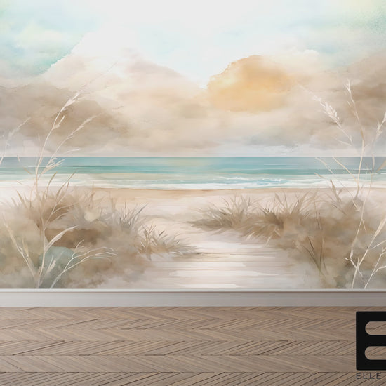 Watercolor Seagrass Wall Mural Modern Wallpaper in Peel & Stick Canvas Vinyl or Non-Woven