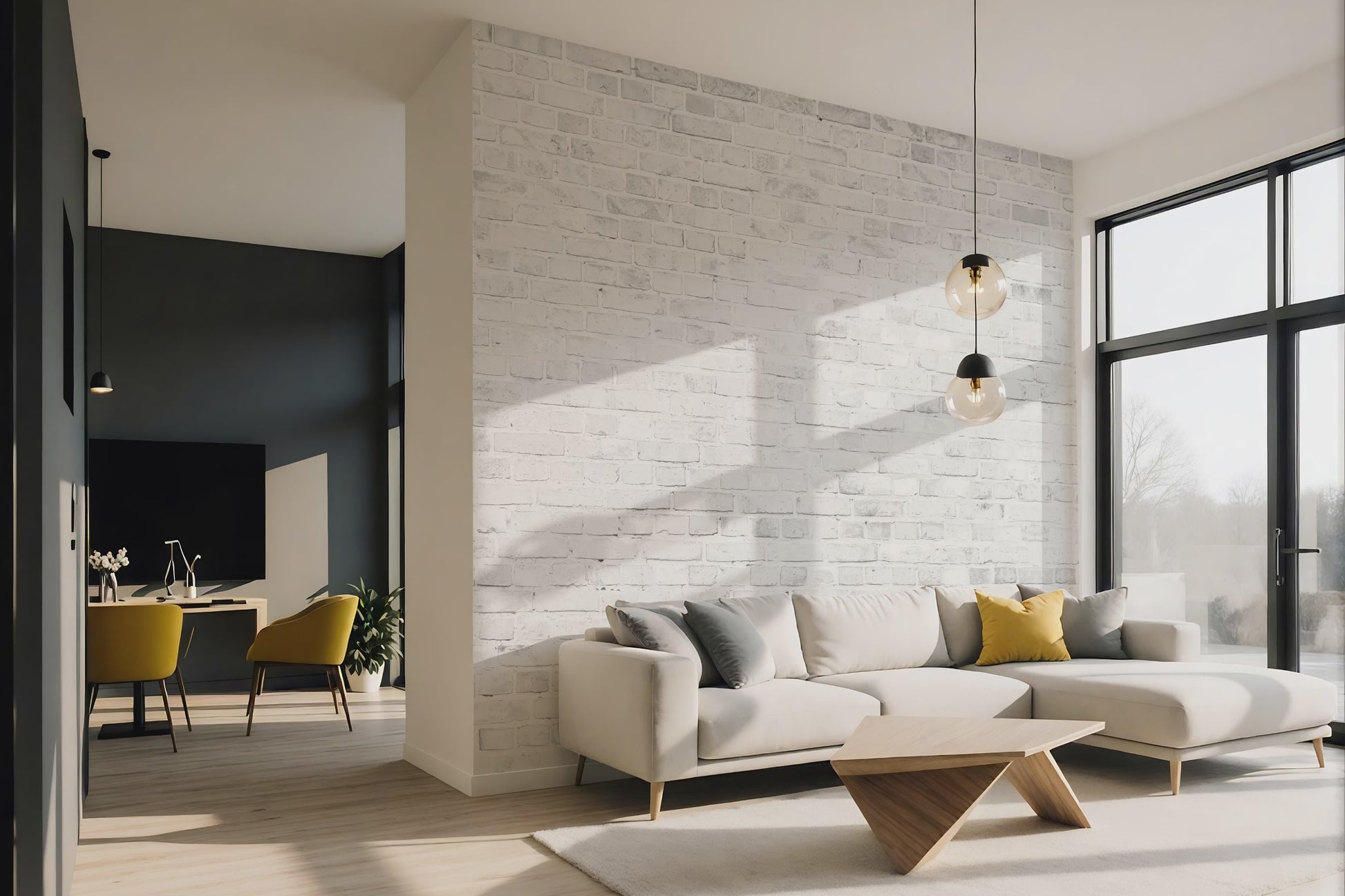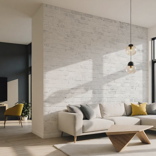 Elevate your space with this stunning white painted brick (non repeat) Wallpaper Mural, featuring soft shades of grays, and creamy whites. The painted design and subtle color washes blend contemporary art with natural tones to create a high-end, gallery-inspired backdrop for your living room, bedroom, or office. Luxury wallpaper. Also works great for all walls in high end powder bath...